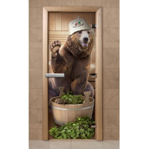 Дверь стекло ФОТОПЕЧАТЬ 1800x700 8мм 3 петли Парилка полотенце
